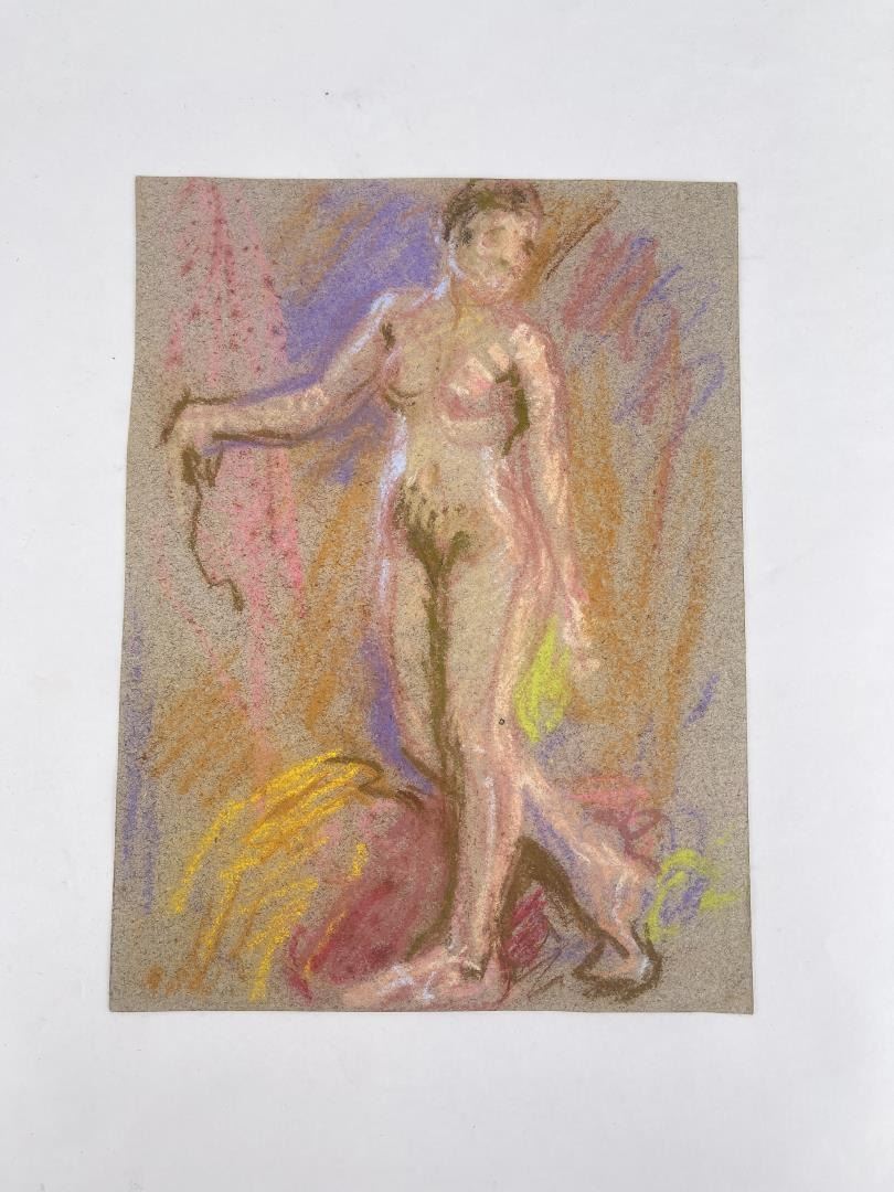 Pastel on paper. 7.25" by 9.75". Circa 1920s. Born in Pittsburgh, PA on Jan. 7, 1888, the son of artist Carl Victor Kress. Fred Kress spent his childhood in Pittsburgh and high school years in Independence, MO. His arrival with his family in San Francisco was a few months before the disaster of 1906. While working with his father as a sign and scenery painter, he studied at the Institute of Art. During his five years at that school he also studied privately with local artists Maynard Dixon, C. Chapel Judson, and Emil Grebs. In 1912 Kress began making painting excursions into the Big Sur area, Yosemite, Lake Tahoe, and Marin County when not working in the paint department of Foster & Kleiser (billboards), a position he held for 42 years. He exhibited with the San Francisco Art Ass'n until 1920 and after that time painted strictly for pleasure and was not known to have exhibited or sold any of his paintings. A resident of San Francisco until 1962, his last years were spent in Santa Rosa, CA where he died on Aug. 10, 1970. Using a bright palette, he painted small, realistic landscapes of northern California. Exh: San Francisco Art Association, 1913-16.