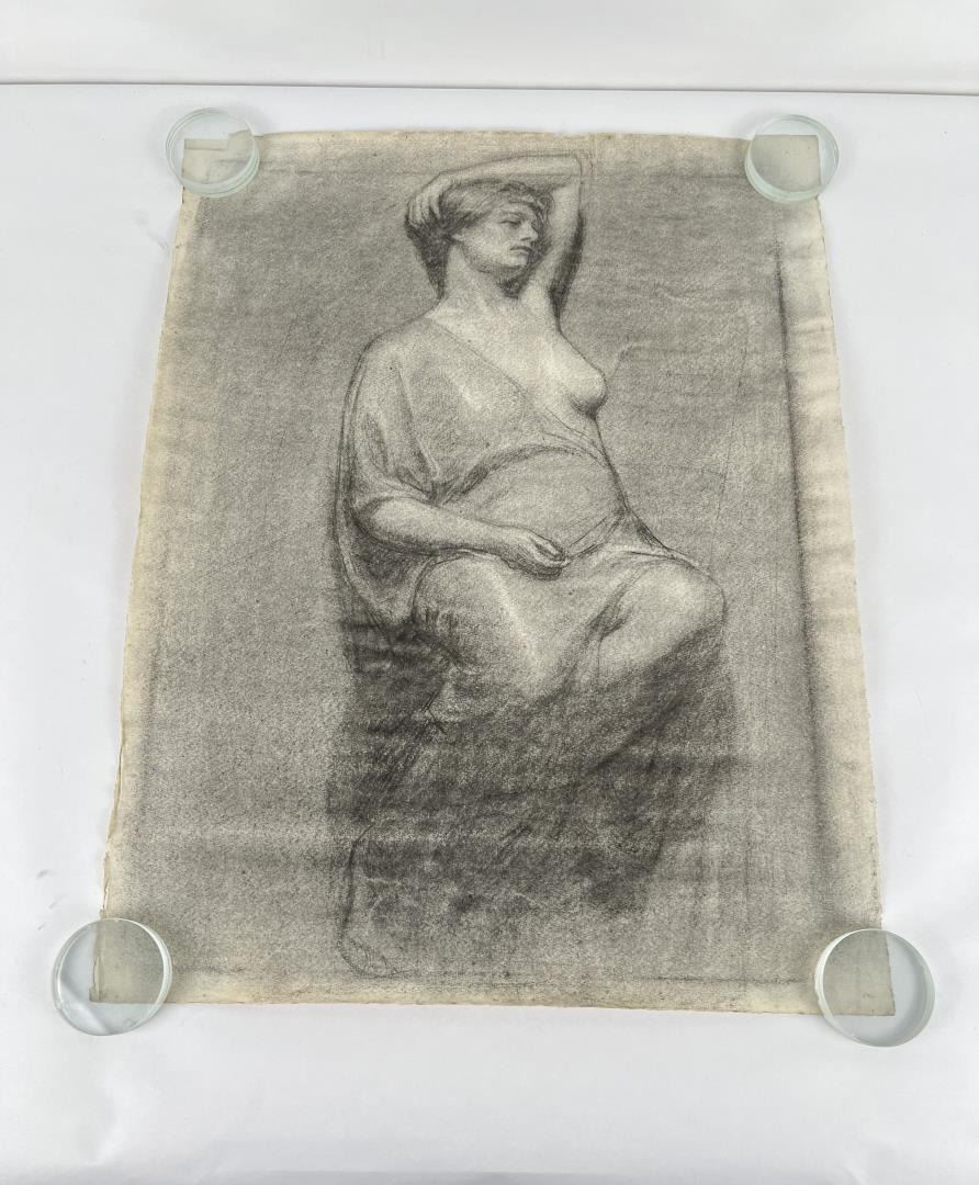 Graphite on paper. 18.5" by 24.5". Circa 1920s. Born in Pittsburgh, PA on Jan. 7, 1888, the son of artist Carl Victor Kress. Fred Kress spent his childhood in Pittsburgh and high school years in Independence, MO. His arrival with his family in San Francisco was a few months before the disaster of 1906. While working with his father as a sign and scenery painter, he studied at the Institute of Art. During his five years at that school he also studied privately with local artists Maynard Dixon, C. Chapel Judson, and Emil Grebs. In 1912 Kress began making painting excursions into the Big Sur area, Yosemite, Lake Tahoe, and Marin County when not working in the paint department of Foster & Kleiser (billboards), a position he held for 42 years. He exhibited with the San Francisco Art Ass'n until 1920 and after that time painted strictly for pleasure and was not known to have exhibited or sold any of his paintings. A resident of San Francisco until 1962, his last years were spent in Santa Rosa, CA where he died on Aug. 10, 1970. Using a bright palette, he painted small, realistic landscapes of northern California. Exh: San Francisco Art Association, 1913-16.