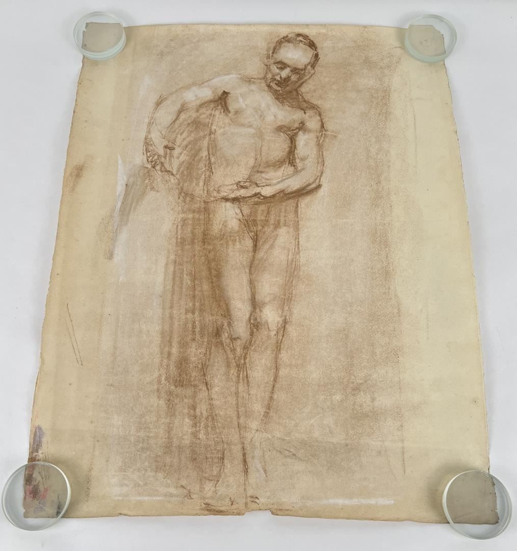 Graphite on paper. 18.75" by 24.25". Circa 1920s. Born in Pittsburgh, PA on Jan. 7, 1888, the son of artist Carl Victor Kress. Fred Kress spent his childhood in Pittsburgh and high school years in Independence, MO. His arrival with his family in San Francisco was a few months before the disaster of 1906. While working with his father as a sign and scenery painter, he studied at the Institute of Art. During his five years at that school he also studied privately with local artists Maynard Dixon, C. Chapel Judson, and Emil Grebs. In 1912 Kress began making painting excursions into the Big Sur area, Yosemite, Lake Tahoe, and Marin County when not working in the paint department of Foster & Kleiser (billboards), a position he held for 42 years. He exhibited with the San Francisco Art Ass'n until 1920 and after that time painted strictly for pleasure and was not known to have exhibited or sold any of his paintings. A resident of San Francisco until 1962, his last years were spent in Santa Rosa, CA where he died on Aug. 10, 1970. Using a bright palette, he painted small, realistic landscapes of northern California. Exh: San Francisco Art Association, 1913-16.