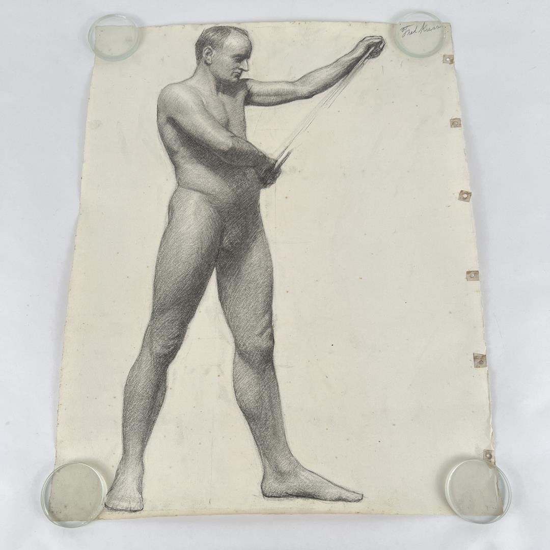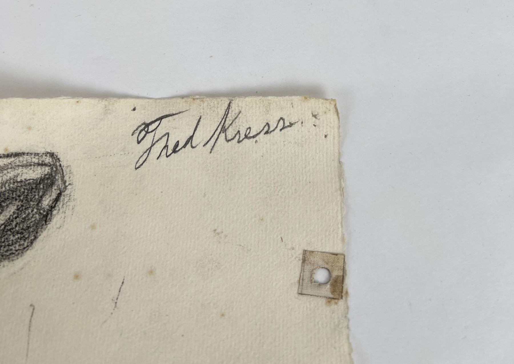 Graphite on paper. 18.5" by 24.5". Circa 1920s. Born in Pittsburgh, PA on Jan. 7, 1888, the son of artist Carl Victor Kress. Fred Kress spent his childhood in Pittsburgh and high school years in Independence, MO. His arrival with his family in San Francisco was a few months before the disaster of 1906. While working with his father as a sign and scenery painter, he studied at the Institute of Art. During his five years at that school he also studied privately with local artists Maynard Dixon, C. Chapel Judson, and Emil Grebs. In 1912 Kress began making painting excursions into the Big Sur area, Yosemite, Lake Tahoe, and Marin County when not working in the paint department of Foster & Kleiser (billboards), a position he held for 42 years. He exhibited with the San Francisco Art Ass'n until 1920 and after that time painted strictly for pleasure and was not known to have exhibited or sold any of his paintings. A resident of San Francisco until 1962, his last years were spent in Santa Rosa, CA where he died on Aug. 10, 1970. Using a bright palette, he painted small, realistic landscapes of northern California. Exh: San Francisco Art Association, 1913-16.
