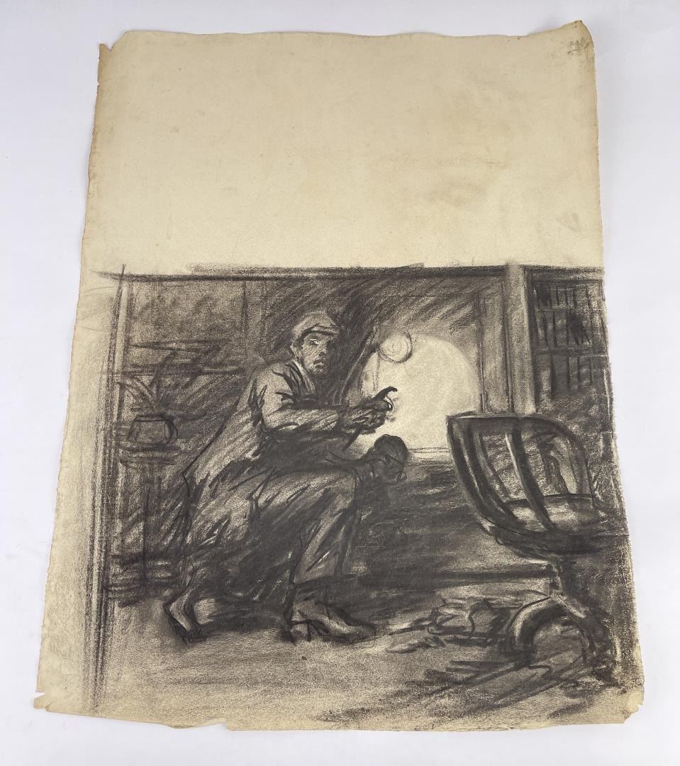Graphite on paper. 18.75" by 24.5". Circa 1920s. Born in Pittsburgh, PA on Jan. 7, 1888, the son of artist Carl Victor Kress. Fred Kress spent his childhood in Pittsburgh and high school years in Independence, MO. His arrival with his family in San Francisco was a few months before the disaster of 1906. While working with his father as a sign and scenery painter, he studied at the Institute of Art. During his five years at that school he also studied privately with local artists Maynard Dixon, C. Chapel Judson, and Emil Grebs. In 1912 Kress began making painting excursions into the Big Sur area, Yosemite, Lake Tahoe, and Marin County when not working in the paint department of Foster & Kleiser (billboards), a position he held for 42 years. He exhibited with the San Francisco Art Ass'n until 1920 and after that time painted strictly for pleasure and was not known to have exhibited or sold any of his paintings. A resident of San Francisco until 1962, his last years were spent in Santa Rosa, CA where he died on Aug. 10, 1970. Using a bright palette, he painted small, realistic landscapes of northern California. Exh: San Francisco Art Association, 1913-16.