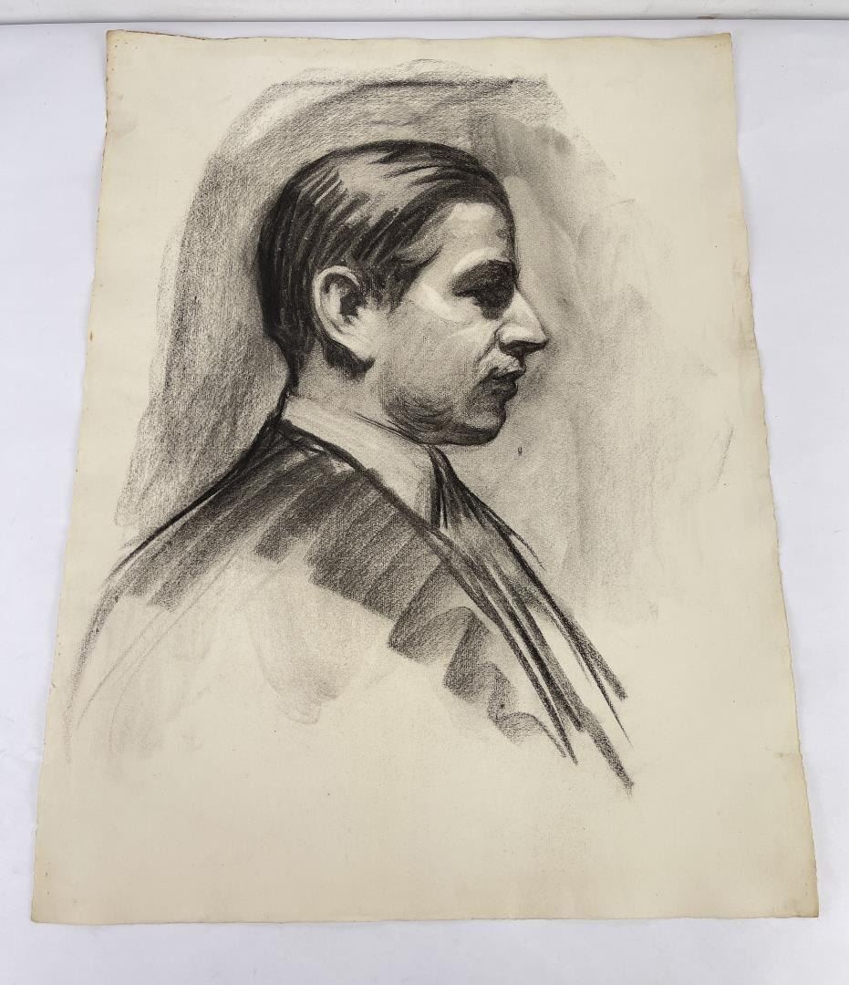 Graphite on paper. 18.75" by 24.5". Circa 1920s. Born in Pittsburgh, PA on Jan. 7, 1888, the son of artist Carl Victor Kress. Fred Kress spent his childhood in Pittsburgh and high school years in Independence, MO. His arrival with his family in San Francisco was a few months before the disaster of 1906. While working with his father as a sign and scenery painter, he studied at the Institute of Art. During his five years at that school he also studied privately with local artists Maynard Dixon, C. Chapel Judson, and Emil Grebs. In 1912 Kress began making painting excursions into the Big Sur area, Yosemite, Lake Tahoe, and Marin County when not working in the paint department of Foster & Kleiser (billboards), a position he held for 42 years. He exhibited with the San Francisco Art Ass'n until 1920 and after that time painted strictly for pleasure and was not known to have exhibited or sold any of his paintings. A resident of San Francisco until 1962, his last years were spent in Santa Rosa, CA where he died on Aug. 10, 1970. Using a bright palette, he painted small, realistic landscapes of northern California. Exh: San Francisco Art Association, 1913-16.