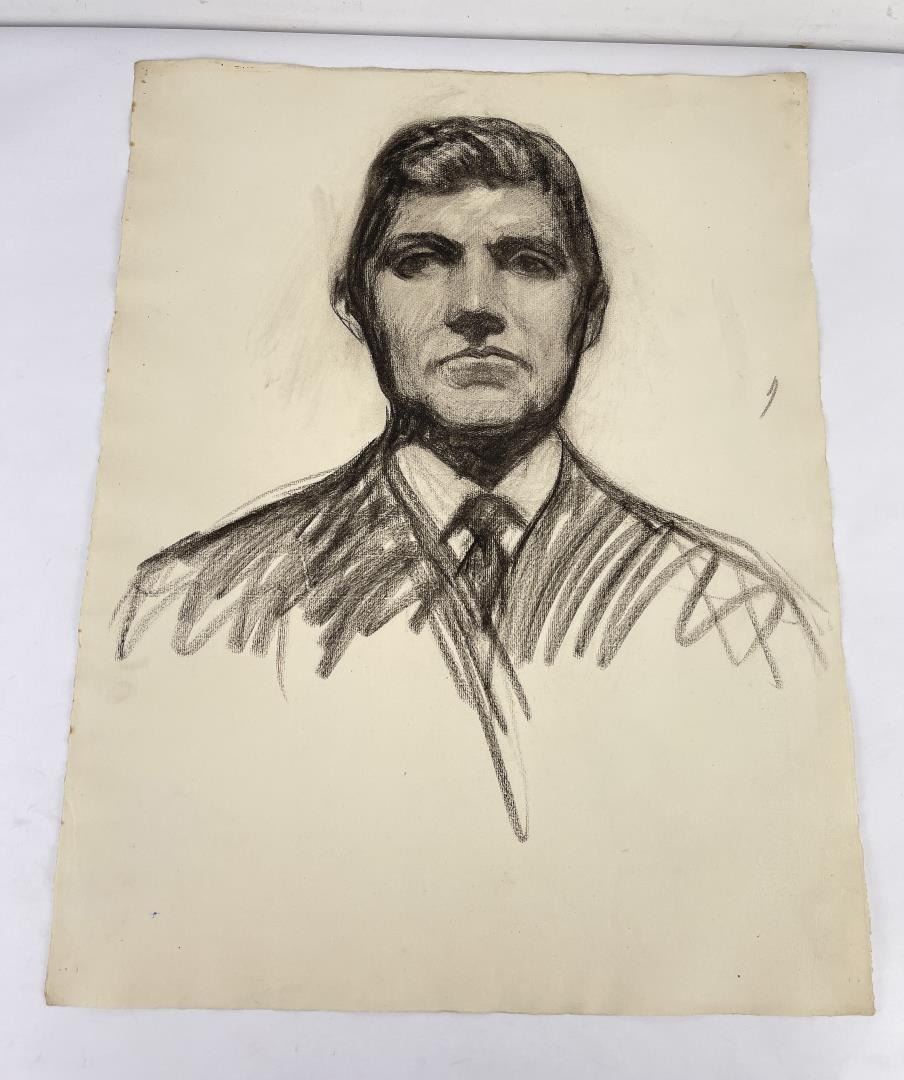 Graphite on paper. 18.75" by 24.25". Circa 1920s. Born in Pittsburgh, PA on Jan. 7, 1888, the son of artist Carl Victor Kress. Fred Kress spent his childhood in Pittsburgh and high school years in Independence, MO. His arrival with his family in San Francisco was a few months before the disaster of 1906. While working with his father as a sign and scenery painter, he studied at the Institute of Art. During his five years at that school he also studied privately with local artists Maynard Dixon, C. Chapel Judson, and Emil Grebs. In 1912 Kress began making painting excursions into the Big Sur area, Yosemite, Lake Tahoe, and Marin County when not working in the paint department of Foster & Kleiser (billboards), a position he held for 42 years. He exhibited with the San Francisco Art Ass'n until 1920 and after that time painted strictly for pleasure and was not known to have exhibited or sold any of his paintings. A resident of San Francisco until 1962, his last years were spent in Santa Rosa, CA where he died on Aug. 10, 1970. Using a bright palette, he painted small, realistic landscapes of northern California. Exh: San Francisco Art Association, 1913-16.