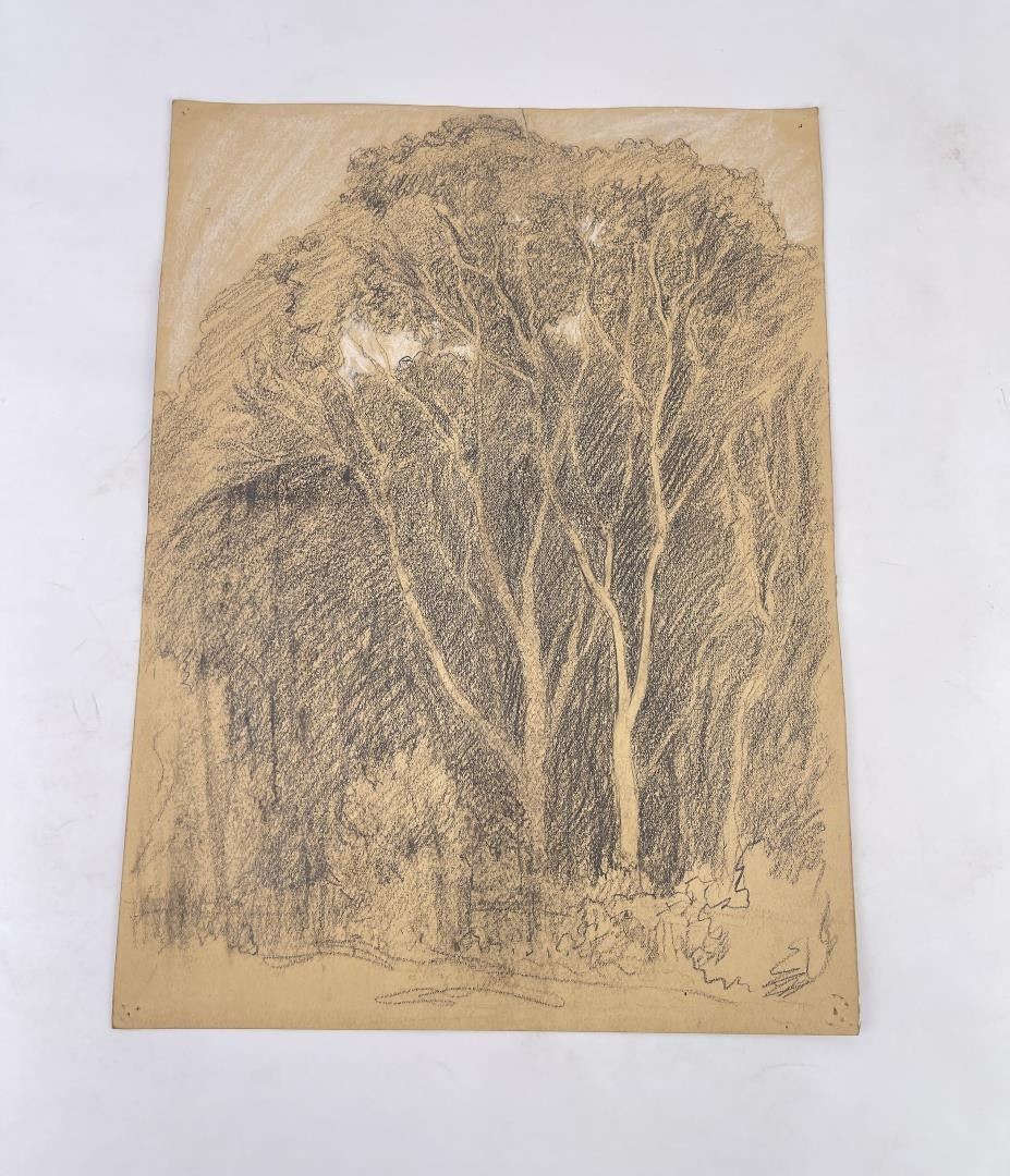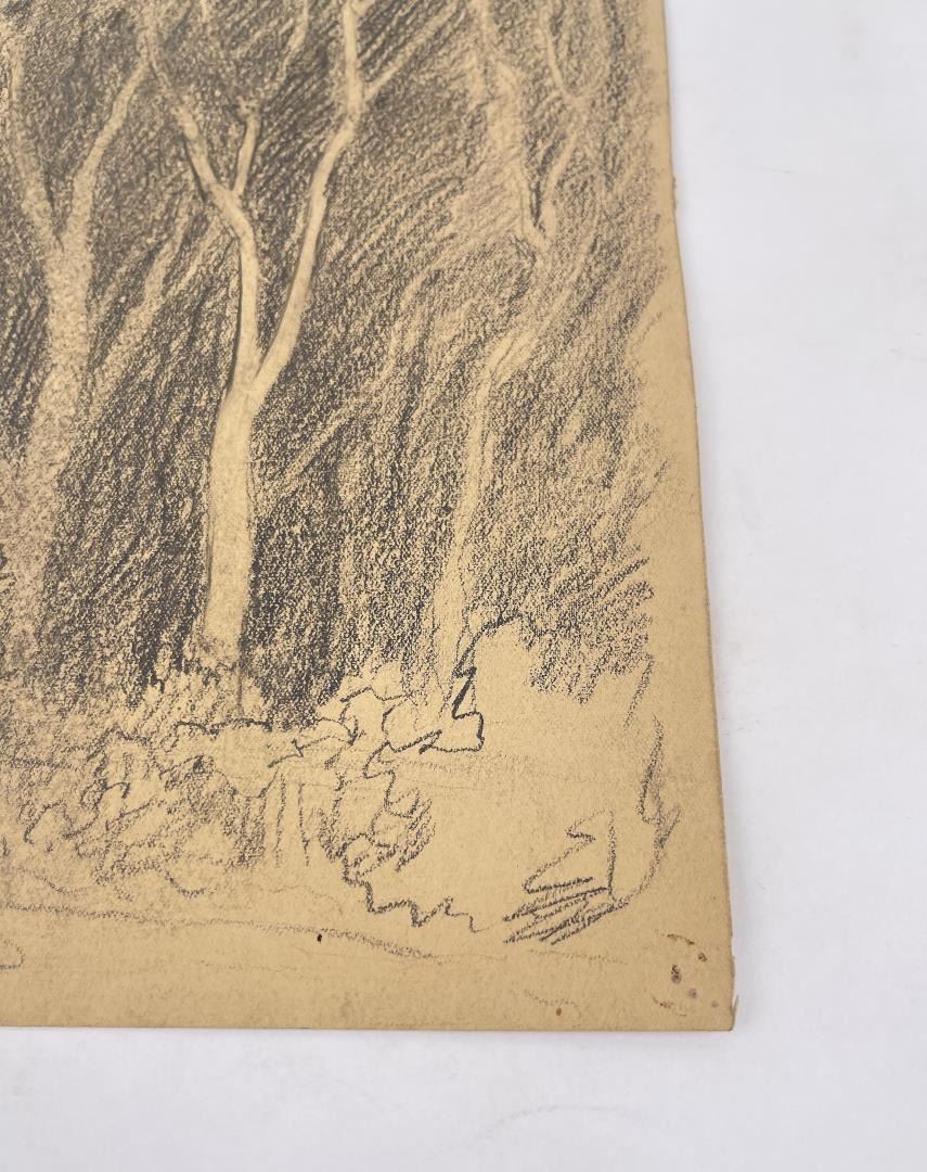Graphite on paper. 11" by 14.75". Circa 1920s. Born in Pittsburgh, PA on Jan. 7, 1888, the son of artist Carl Victor Kress. Fred Kress spent his childhood in Pittsburgh and high school years in Independence, MO. His arrival with his family in San Francisco was a few months before the disaster of 1906. While working with his father as a sign and scenery painter, he studied at the Institute of Art. During his five years at that school he also studied privately with local artists Maynard Dixon, C. Chapel Judson, and Emil Grebs. In 1912 Kress began making painting excursions into the Big Sur area, Yosemite, Lake Tahoe, and Marin County when not working in the paint department of Foster & Kleiser (billboards), a position he held for 42 years. He exhibited with the San Francisco Art Ass'n until 1920 and after that time painted strictly for pleasure and was not known to have exhibited or sold any of his paintings. A resident of San Francisco until 1962, his last years were spent in Santa Rosa, CA where he died on Aug. 10, 1970. Using a bright palette, he painted small, realistic landscapes of northern California. Exh: San Francisco Art Association, 1913-16.