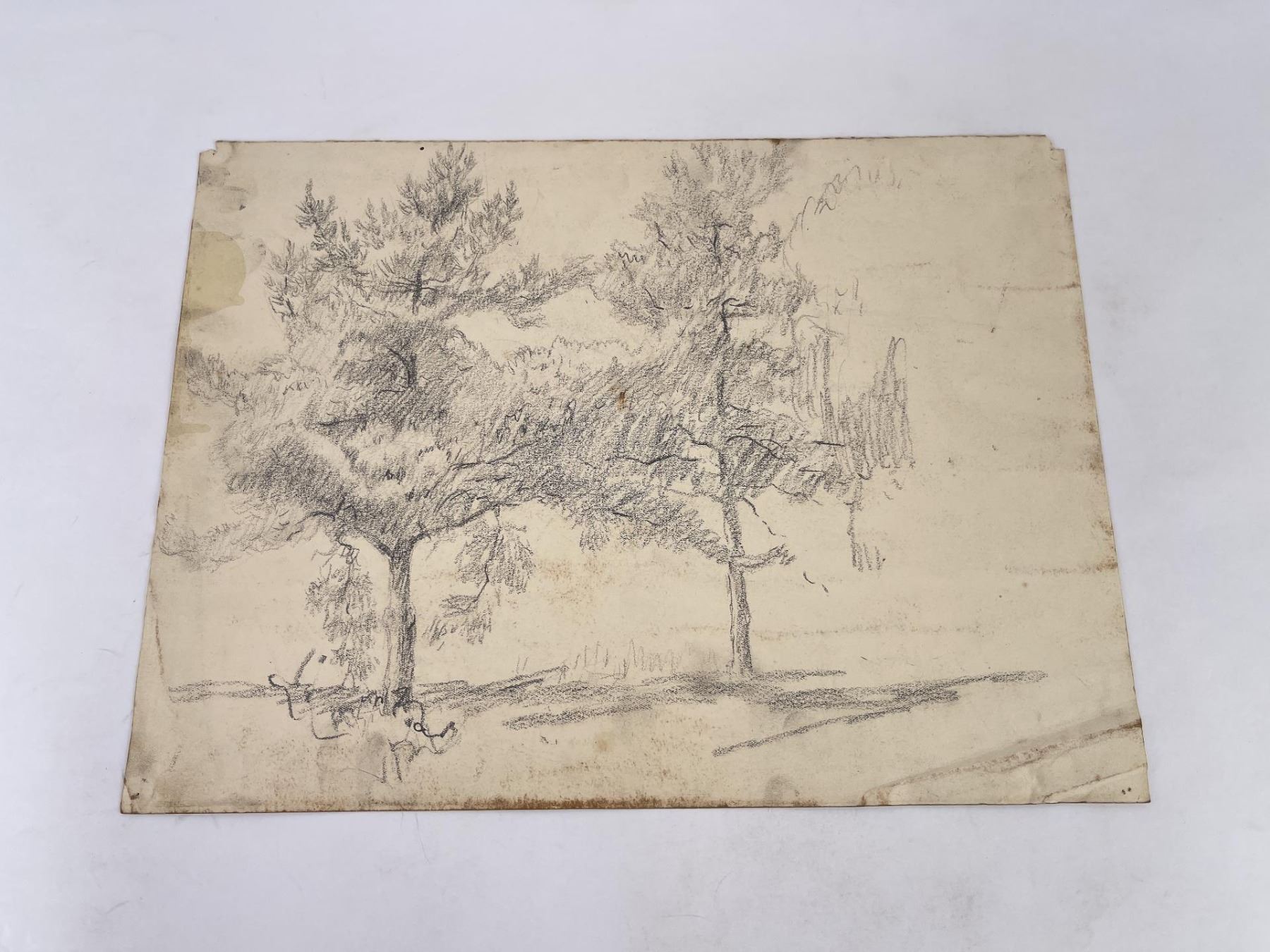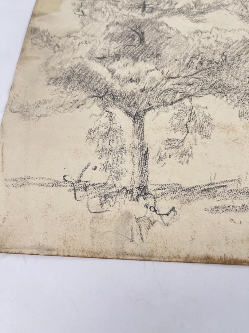 Graphite on paper. 11" by 15". Circa 1920s. Born in Pittsburgh, PA on Jan. 7, 1888, the son of artist Carl Victor Kress. Fred Kress spent his childhood in Pittsburgh and high school years in Independence, MO. His arrival with his family in San Francisco was a few months before the disaster of 1906. While working with his father as a sign and scenery painter, he studied at the Institute of Art. During his five years at that school he also studied privately with local artists Maynard Dixon, C. Chapel Judson, and Emil Grebs. In 1912 Kress began making painting excursions into the Big Sur area, Yosemite, Lake Tahoe, and Marin County when not working in the paint department of Foster & Kleiser (billboards), a position he held for 42 years. He exhibited with the San Francisco Art Ass'n until 1920 and after that time painted strictly for pleasure and was not known to have exhibited or sold any of his paintings. A resident of San Francisco until 1962, his last years were spent in Santa Rosa, CA where he died on Aug. 10, 1970. Using a bright palette, he painted small, realistic landscapes of northern California. Exh: San Francisco Art Association, 1913-16.
