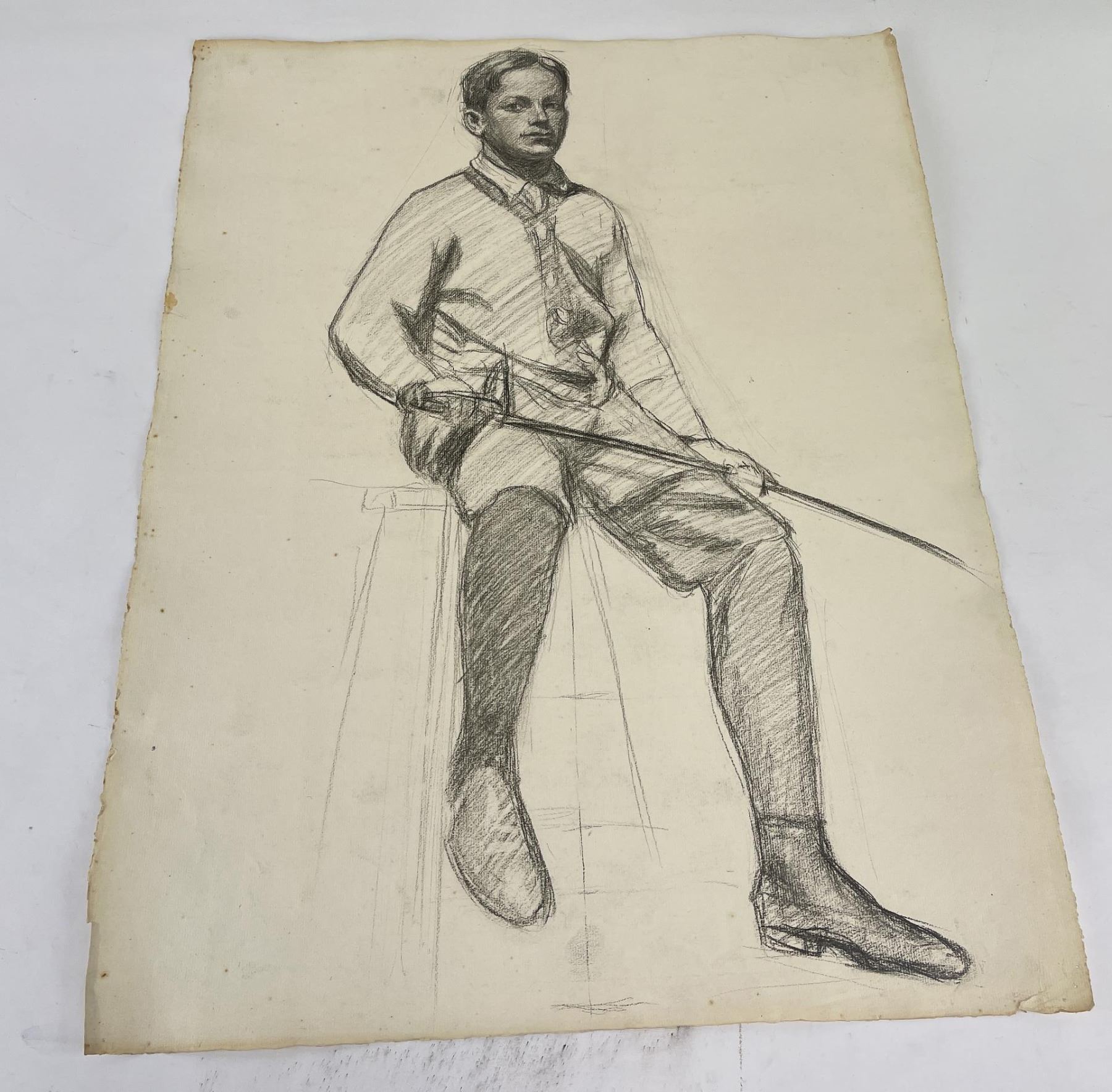 Graphite on paper. 18.75" by 24.5". Circa 1920s. Born in Pittsburgh, PA on Jan. 7, 1888, the son of artist Carl Victor Kress. Fred Kress spent his childhood in Pittsburgh and high school years in Independence, MO. His arrival with his family in San Francisco was a few months before the disaster of 1906. While working with his father as a sign and scenery painter, he studied at the Institute of Art. During his five years at that school he also studied privately with local artists Maynard Dixon, C. Chapel Judson, and Emil Grebs. In 1912 Kress began making painting excursions into the Big Sur area, Yosemite, Lake Tahoe, and Marin County when not working in the paint department of Foster & Kleiser (billboards), a position he held for 42 years. He exhibited with the San Francisco Art Ass'n until 1920 and after that time painted strictly for pleasure and was not known to have exhibited or sold any of his paintings. A resident of San Francisco until 1962, his last years were spent in Santa Rosa, CA where he died on Aug. 10, 1970. Using a bright palette, he painted small, realistic landscapes of northern California. Exh: San Francisco Art Association, 1913-16.