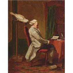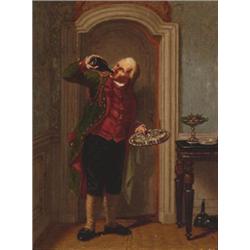 Frederick Lintz (1824-1909), Belgian, BIRD OF MISCHIEF; A QUICK DRINK, Pair of oils on panel; e...