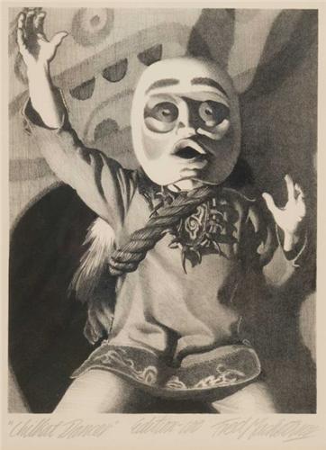 Frederick Machetanz (1908-2002). Lithograph. Edition of 100. Signed LR. 11 1/2" x 8". "Chilkat Dancer". (est $1,500-2,500). Provenance: MAC Museum, Spokane, Washington.