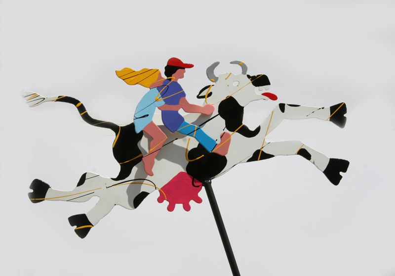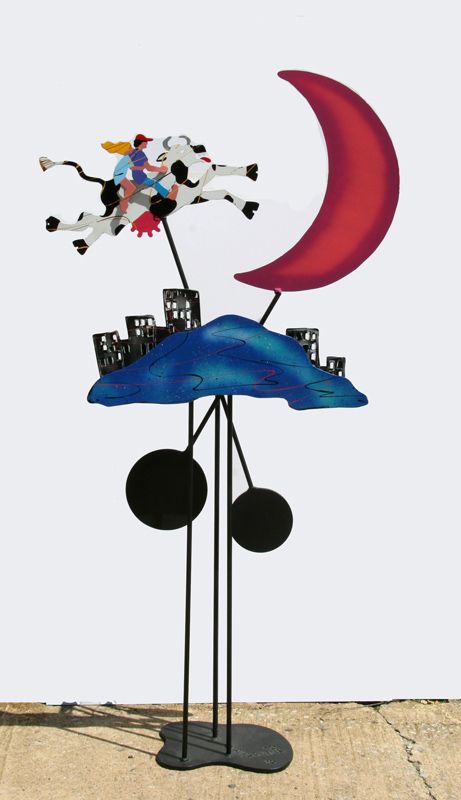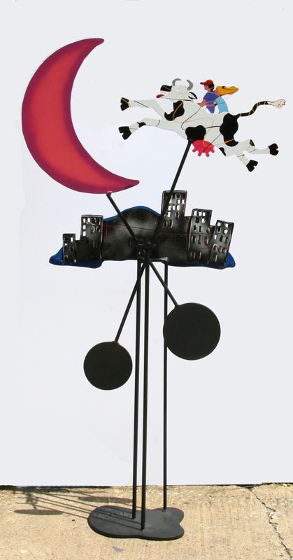 Frederick Prescott, Cow Jumped Over the Moon, Steel Kinetic Metal Sculpture