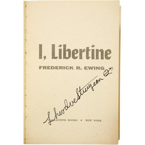 <B>Frederick R. Ewing Signed: </B></I><B><I>I, Libertine.</B></I></B></I> Signed by illustrator Kelly Freas; signed by the author Theodore Sturgeon (uses the pseudonym Ewing). (New York: Ballantine Books, 1956), first edition, 151 pages, illustrated wraps, 12mo. Condition: very good.<BR><BR><b>Shipping:</b> Books & Catalogs (<a target="_blank" href="http://www.heritageauctions.com/common/shipping.php">view shipping information</a>)