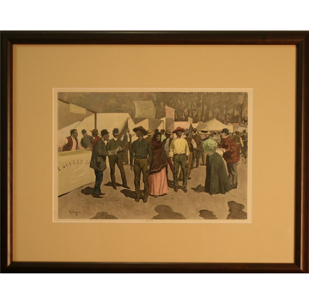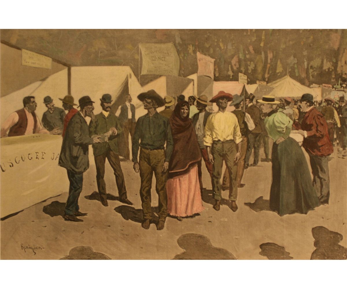 Frederick Remington, Hand Colored Lithograph, "Paying the Indians for the Cherokee Strip", Circa 1895 executed for Colliers Magazine, Signed lower left in the stone, -157104-