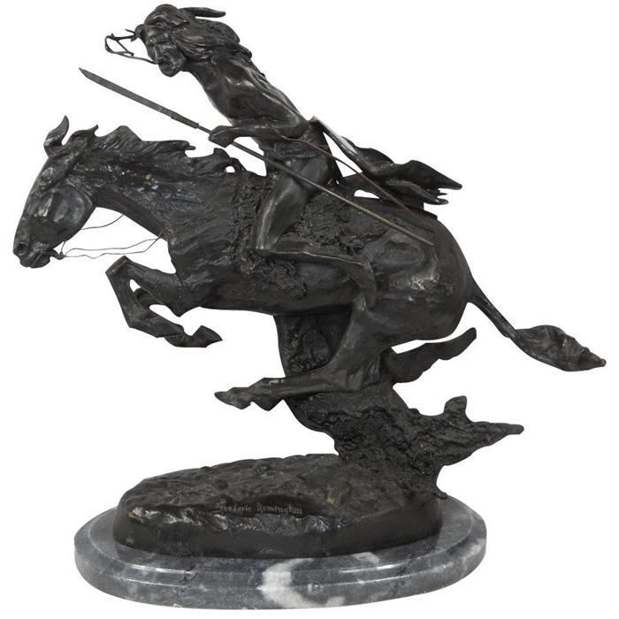 Frederick Remington bronze Indian statue on marble base, c.1960's-1970's, Exc cond.