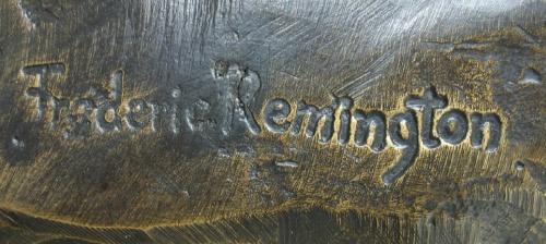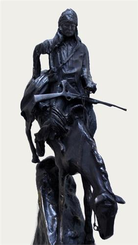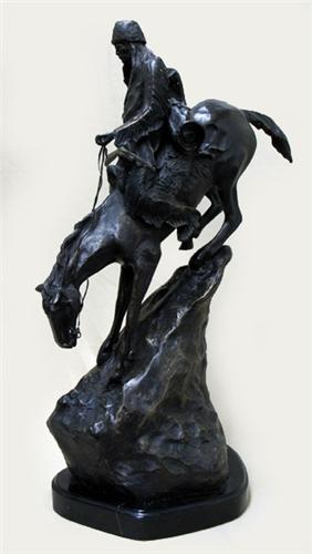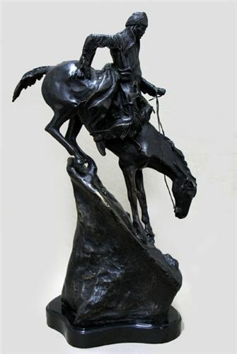 Frederick Remington bronze recast on black marble base "Mountain Man"; late 20th C.; measures 28" high x 17" across x 11" deep (no visible defects)