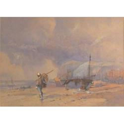 Frederick William Woledge (1840-1895) watercolour, Beach scene with shrimper, signed, 8.5 x 11.5...
