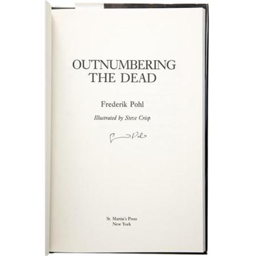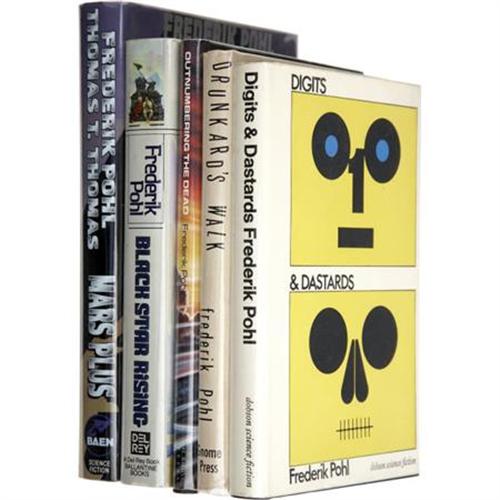 <B>Frederik Pohl: Five Signed Books.</B></I> Includes the following: <BR><B><I>Outnumbering the Dead.</B></I></B></I> (New York: St. Martin's Press, 1992), first edition, 110 pages, black boards, 8vo, dust jacket. Condition (book/ dj): as new/ as new. <BR><B><I>Mars Plus.</B></I></B></I> (Riverdale: Baen Publishing, 1994), first edition, 342 pages, black boards, 8vo, dust jacket. Condition (book/ dj): as new/ as new. <BR><B><I>Digits and Dastards.</B></I></B></I> (London: Dennis Dobson, 1968), first hardcover edition, 192 pages, black boards, 8vo, dust jacket. Condition (book/ dj): fine/ fine. <BR><B><I>Drunkard's Walk.</B></I></B></I> (Hicksville: Gnome Press, 1960), first hardcover edition, 160 pages, tan boards, 8vo, dust jacket. Condition (book/ dj): fine/ very good. <BR><B><I>Black Star Rising.</B></I></B></I> (New York: Del Rey, 1985), first edition, 282 pages, blue cloth over gray boards, 8vo, dust jacket. Condition (book/ dj): fine/ fine.<BR><BR><b>Shipping:</b> Books & Catalogs (<a target="_blank" href="http://www.heritageauctions.com/common/shipping.php">view shipping information</a>)