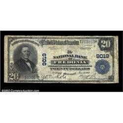 Fredonia, NY - $20 1902 Plain Back Fr. 652 The NB of Fredonia Ch. # 9019Pleasing Fine example from Fredonia's other (and considerably more easily obtained) issuer. Important notice: We expect to be auctioning lots at the rate of 200-250 per hour. Sometimes eBay Premier live bid software cannot keep up with that pace, so we strongly recommend that you place a realistic proxy bid now as insurance to avoid disappointment. Also please note that all Heritage/CAA lots purchased through eBay Premier carry a 20% Buyer's Premium. Please make sure you read the Terms and Conditions.