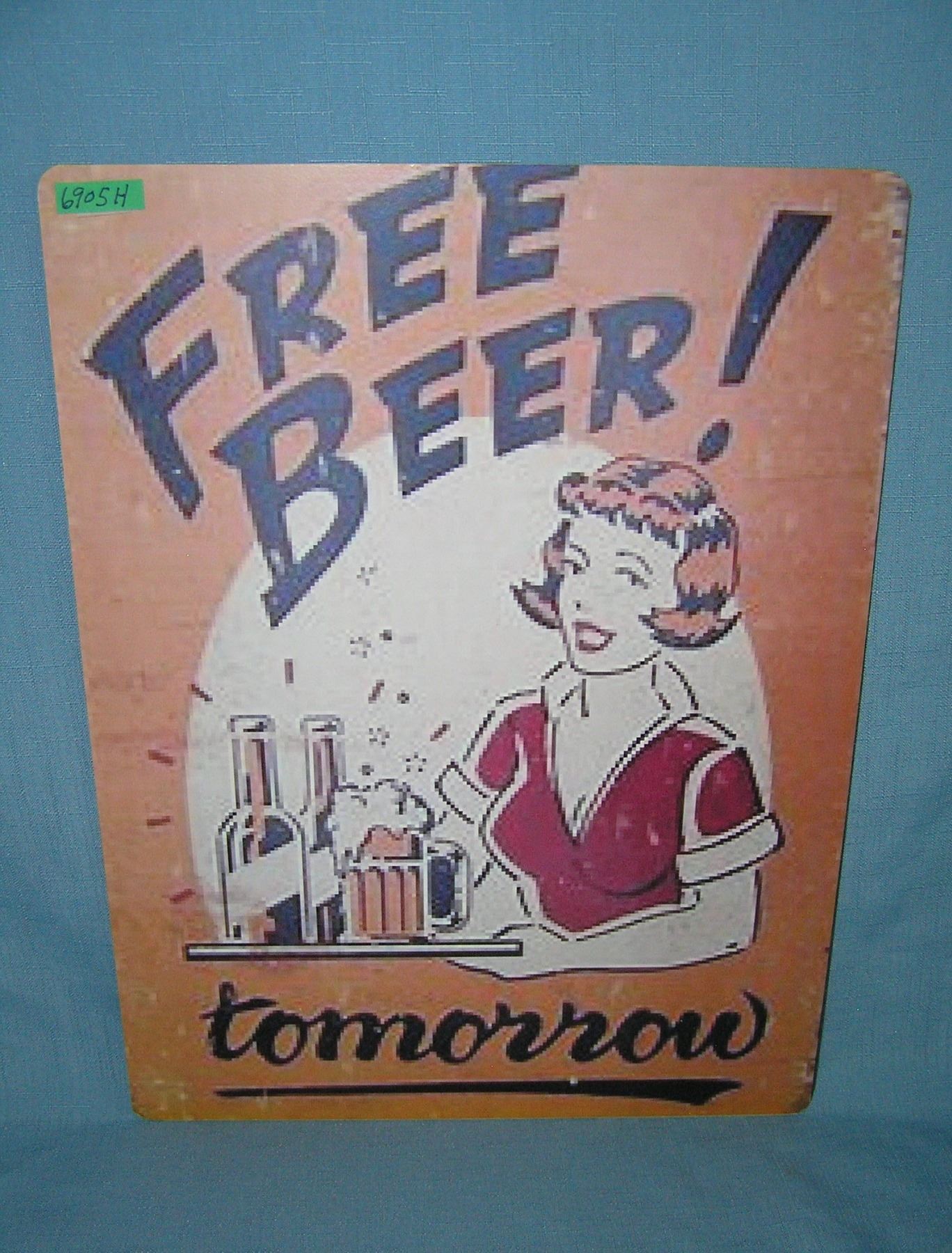 Free Beer Tomorrow retro style advertising sign printed on PVC hardboard these signs are auctioned for their decorative and display purposes 12 inches by 16 inches est. value $50.00-$60.00