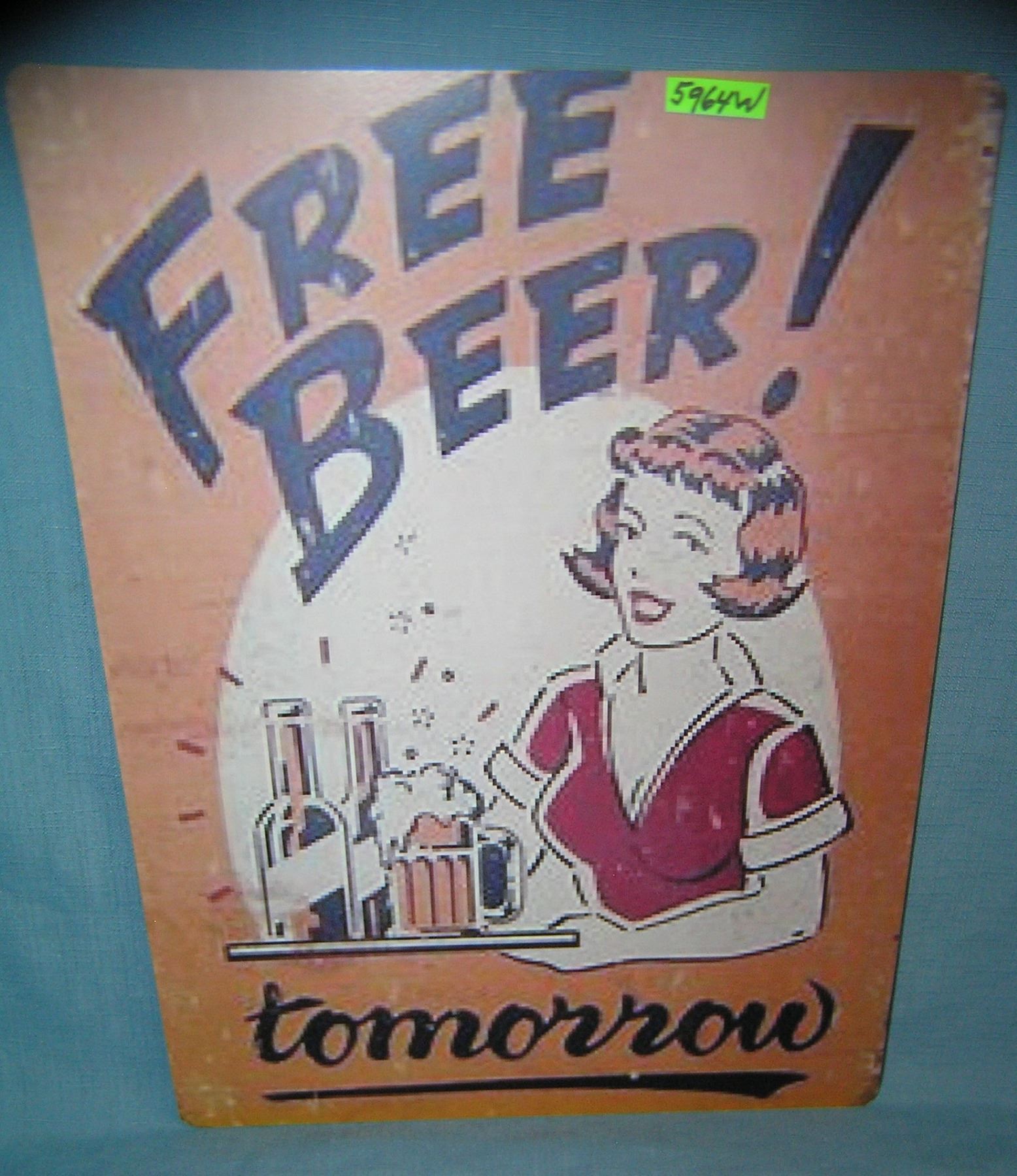 Free Beer! Tomorrow retro style advertising sign est. value $50.00-$65.00