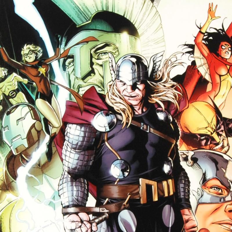 A piece of comic book history, this limited edition piece from art originally drawn by Jim Cheung, depicts a heroic Thor. Jim Cheung was named as one of 2005's "Young Guns" by Marvel Editor-in-Chief Joe Quesada, and has been described as a "future superstar penciller." "Free Comic Book Day 2009 Avengers #1" is an extremely limited edition giclee on canvas by Jim Cheung presented by Marvel Comics, hand signed by the great Stan Lee and numbered out of only 10! This piece comes custom framed and ready to hang. Includes Certificate of Authenticity! Measures approx. 25" x 34" (with frame); 18" x 27" (image).