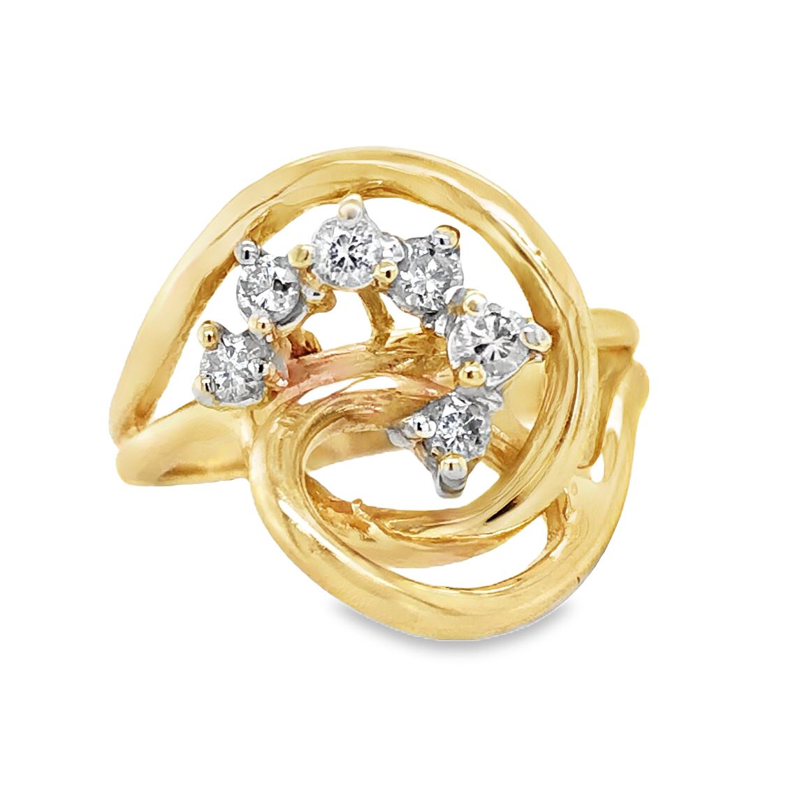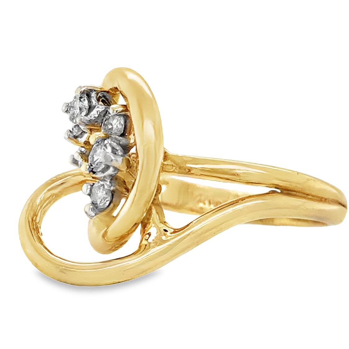 DESCRIPTION DETAIL: Diamond Freeform Split-Shank Ring, 14K Yellow Gold. US Size 5.75.