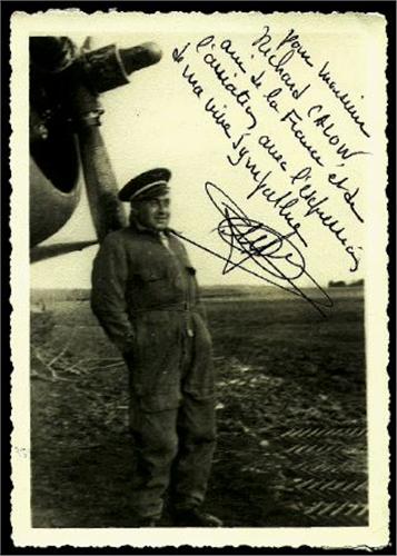 Free French Fighter Aces with the R.A.F. Collection of about 23 items: signed and unsigned photos and A.Ls.S., and T.Ls.S., in English and French, variously. Dramatic accounts of the pilots, describing a probable strafing of Rommel's command car (with large ink drawing of area) on a Normandy road; of dogfight between French Curtiss planes and German Dorniers; of pilots whose parachutes failed to open and who died in the sky tied to their planes. Graphic descriptions of Dunkirk, the Battle of Britain: "140 Spitfire sorties over enemy territory." Pilot Camille Plubeau: "May and June 1940 we often had to fight twice daily. Many of my comrades didn't survive." Claude Raoul-Duval writes, "...My very best achievement was to survive...." André Gibert tells of fighting over Dieppe, and on D-Day, June 6, 1944. Request detailed list. Very fine.