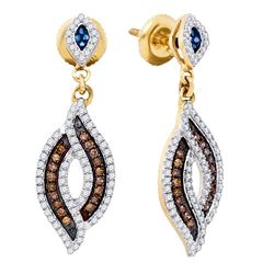 0.33 CTW Cognac-brown Color Diamond Diagonal Earrings 10KT Yellow Gold - REF-20Y9X