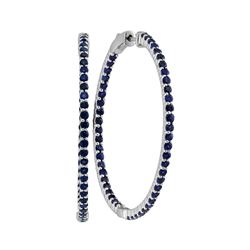 3.75 CTW Blue Sapphire Hoop Earrings 14KT White Gold - REF-119N9F