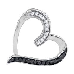 0.20 CTW Black Color Diamond Heart Love Pendant 10KT White Gold - REF-13Y4X