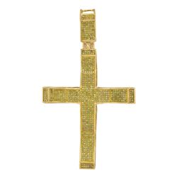 1 CTW Mens Yellow Color Diamond Roman Cross Charm Pendant 10KT Yellow Gold - REF-87X2Y
