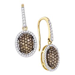 0.75 CTW Cognac-brown Color Diamond Dangle Earrings 10KT Yellow Gold - REF-41N3F