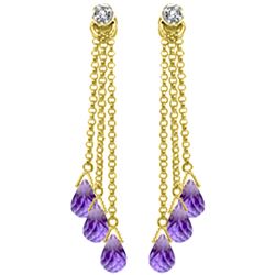 Genuine 4.8 ctw Amethyst & Diamond Earrings Jewelry 14KT Yellow Gold - REF-53V2W