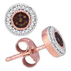 0.10 CTW Red Color Diamond Flower Cluster Screwback Earrings 10KT Rose Gold - REF-18X2Y