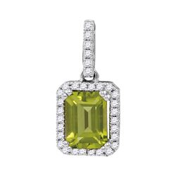 REF-34M4H- SKU: GD105033 ---- 1.13 CTW Emerald Peridot Solitaire Diamond Rectangle Pendant 14KT White Gold Manufacturer's Suggested Retail Pric...
