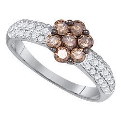 0.92 CTW Cognac-brown Color Diamond Flower Cluster Ring 10KT White Gold - REF-47Y9X