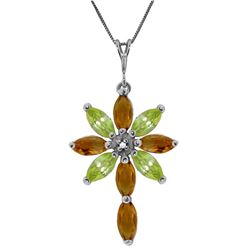 Genuine 2.0 ctw Citrine, Peridot & Diamond Necklace Jewelry 14KT White Gold - REF-47Z4N