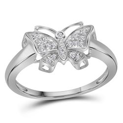 0.08 CTW Diamond Butterfly Bug Cluster Fashion Ring 10KT White Gold - REF-14F9N