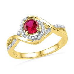 0.77 CTW Created Ruby Solitaire Diamond Ring 10KT Yellow Gold - REF-25X4Y