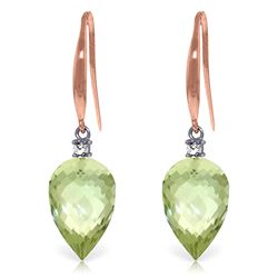 Genuine 19.1 ctw Green Amethyst & Diamond Earrings Jewelry 14KT Rose Gold - REF-41W3Y