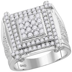2.7 CTW Mens Diamond Square Cluster Ring 10KT White Gold - REF-179Y9X