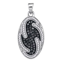 0.50 CTW Black Color Diamond Oval Cluster Pendant 10KT White Gold - REF-26F9N