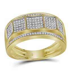 0.36 CTW Mens Pave-set Diamond Faceted Cluster Ring 10KT Yellow Gold - REF-49F5N