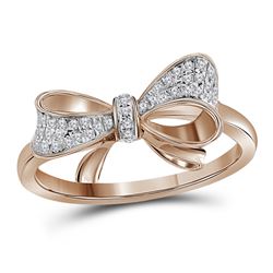 0.07 CTW Diamond Cluster Ribbon Knot Bow Ring 10KT Rose Gold - REF-19F4N