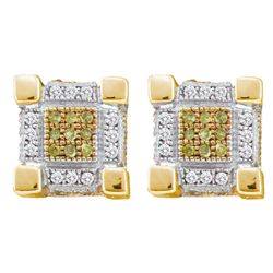0.29 CTW Mens Yellow Color Diamond 3D Cube Stud Earrings 10KT Yellow Gold - REF-26H9M