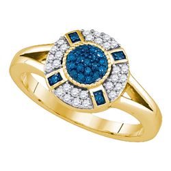 REF-38N9F- SKU: GD86364 ---- 0.40 CTW Blue Color Diamond Circle Cluster Ring 10KT Yellow Gold Manufacturer's Suggested Retail Price: $1530.00 M...