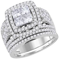 2.51 CTW Princess Diamond Soleil Cluster Bridal Engagement Ring 14KT White Gold - REF-285X2Y
