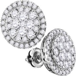 1.01 CTW Diamond Flower Cluster Circle Earrings 14KT White Gold - REF-94F5N