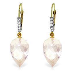 Genuine 24.65 ctw White Topaz & Diamond Earrings Jewelry 14KT Yellow Gold - REF-61Y2F