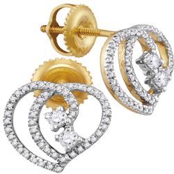 0.25 CTW Diamond 2-stone Heart Earrings 10KT Yellow Gold - REF-22Y4X