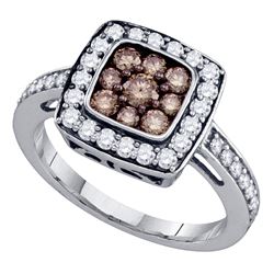 1 CTW Cognac-brown Color Diamond Square Cluster Ring 10KT White Gold - REF-49W5K