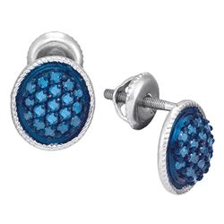 0.50 CTW Blue Color Diamond Oval Cluster Earrings 10KT White Gold - REF-24W2K